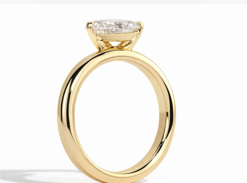 The defining feature of The Elise is its substantial 3mm band, offering a more pronounced and luxurious presence on the hand. The smooth, high-polish gold shank enhances the diamond’s brilliance while providing a contemporary, fashion-forward profile. The wider band creates balance and structure, perfectly complementing the dramatic silhouette of the pear centre stone.