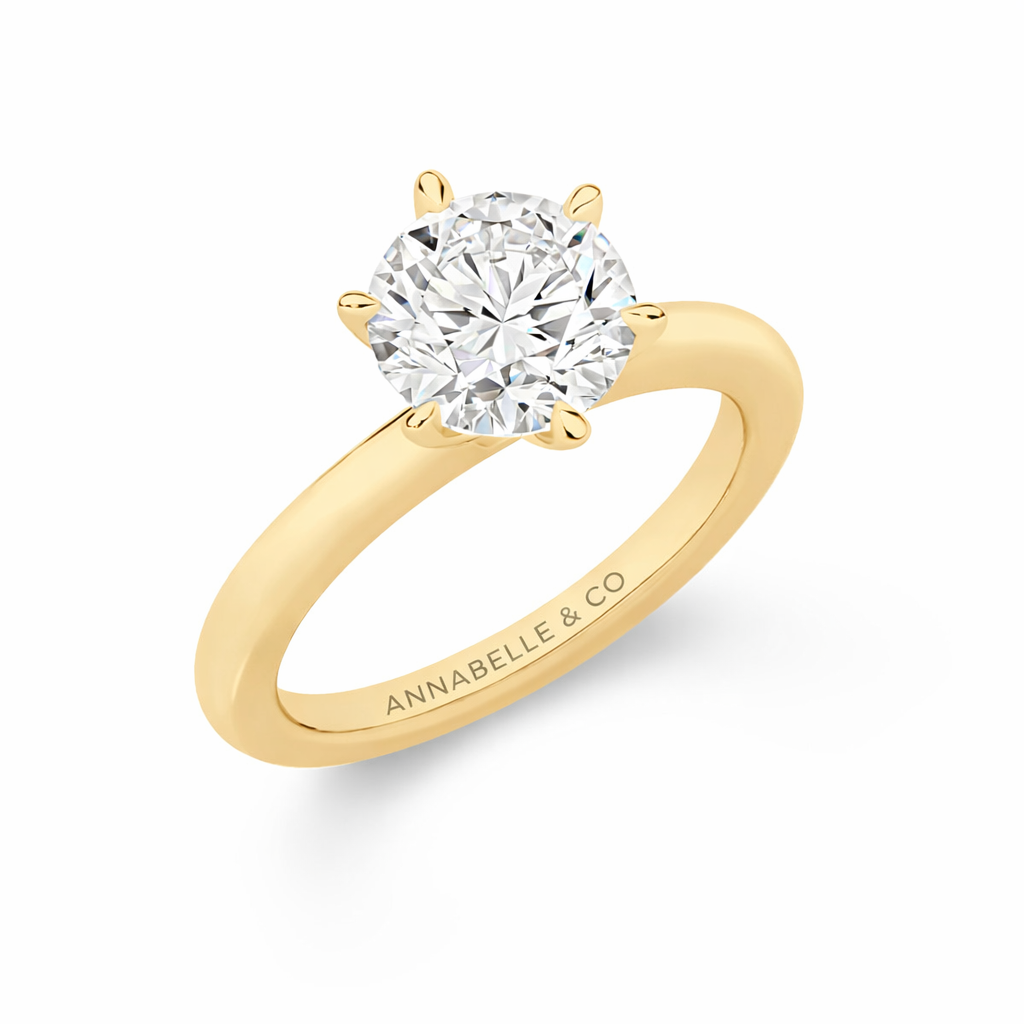 From the Annabelle & Co Collection, where timeless design meets exceptional lab-grown diamonds. Handcrafted in 18K Yellow Gold by our master jewellers in our Sydney workshop, The Michelle Solitaire Engagement Ring features a breathtaking 2.00ct Round Brilliant Cut lab diamond secured in a classic six-claw setting, complemented by a refined plain half-round band.